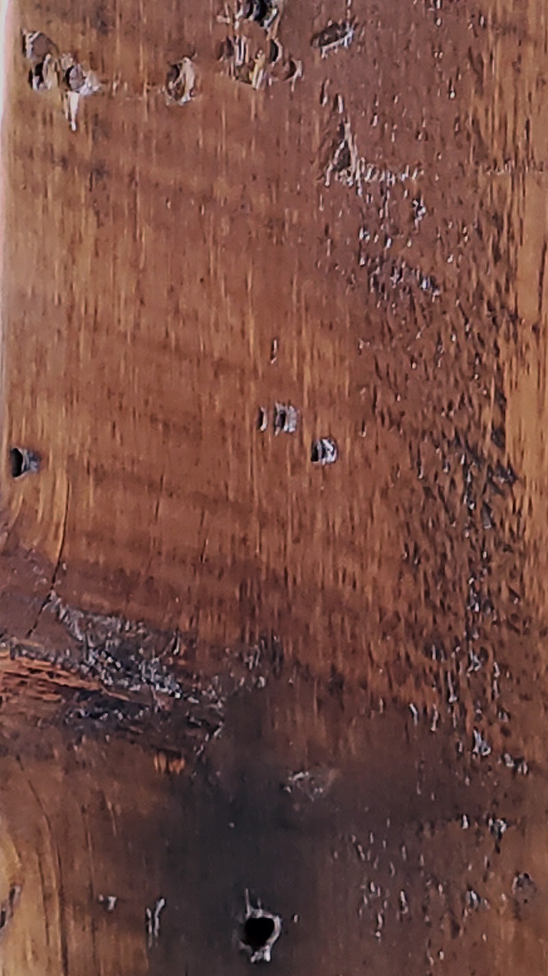 We love the unique characteristics that each beam exhibits. That is why we do not stain our beams, we lightly sand each beam to remove loose dirt and splinters while maintaining the weathered patina. Then we coat with a commercial grade, clear water based polyurethane. A durable finish that highlights the wood's natural color and one-of-a-kind character.