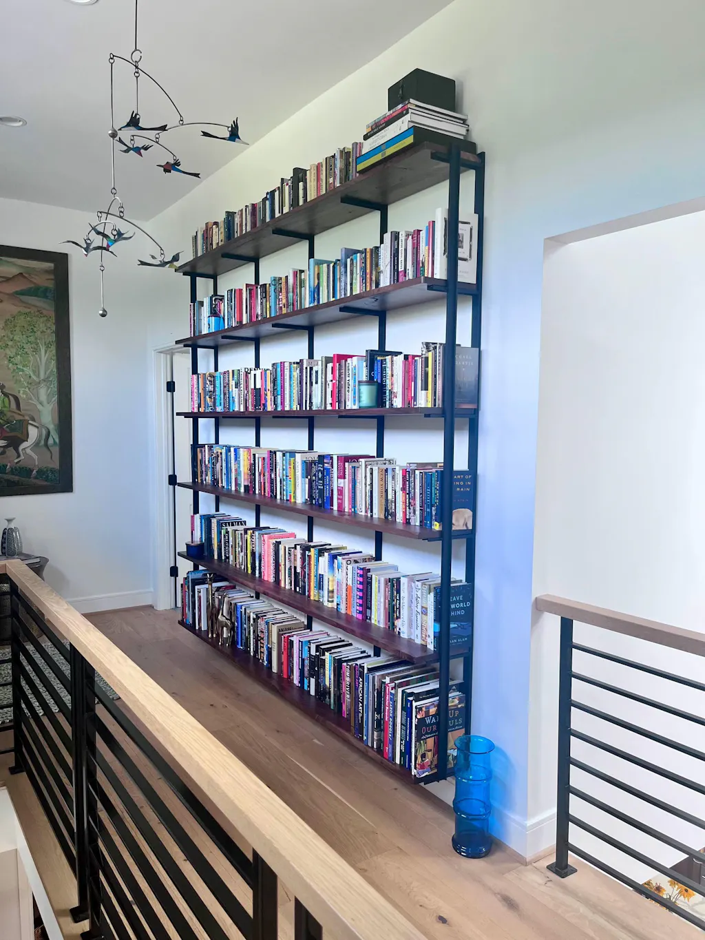 This floating bookcase has an additional metal detail on the shelf brackets to create a beautiful bookend that is both architectural and functional. Not only does it increase the strength of the brackets, it prevents your books and items from falling off. This will maximize your storage on your floating shelves, as you will not require separate bookends.