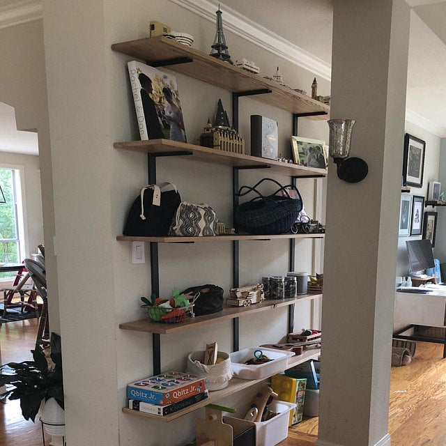 Easily personalize your custom shelving unit to perfectly fit your aesthetic by choosing from our 5 different wood options and 3 different bracket finishes. No matter the combination, our shelving will enhance your space with quality materials, sure to last a lifetime.